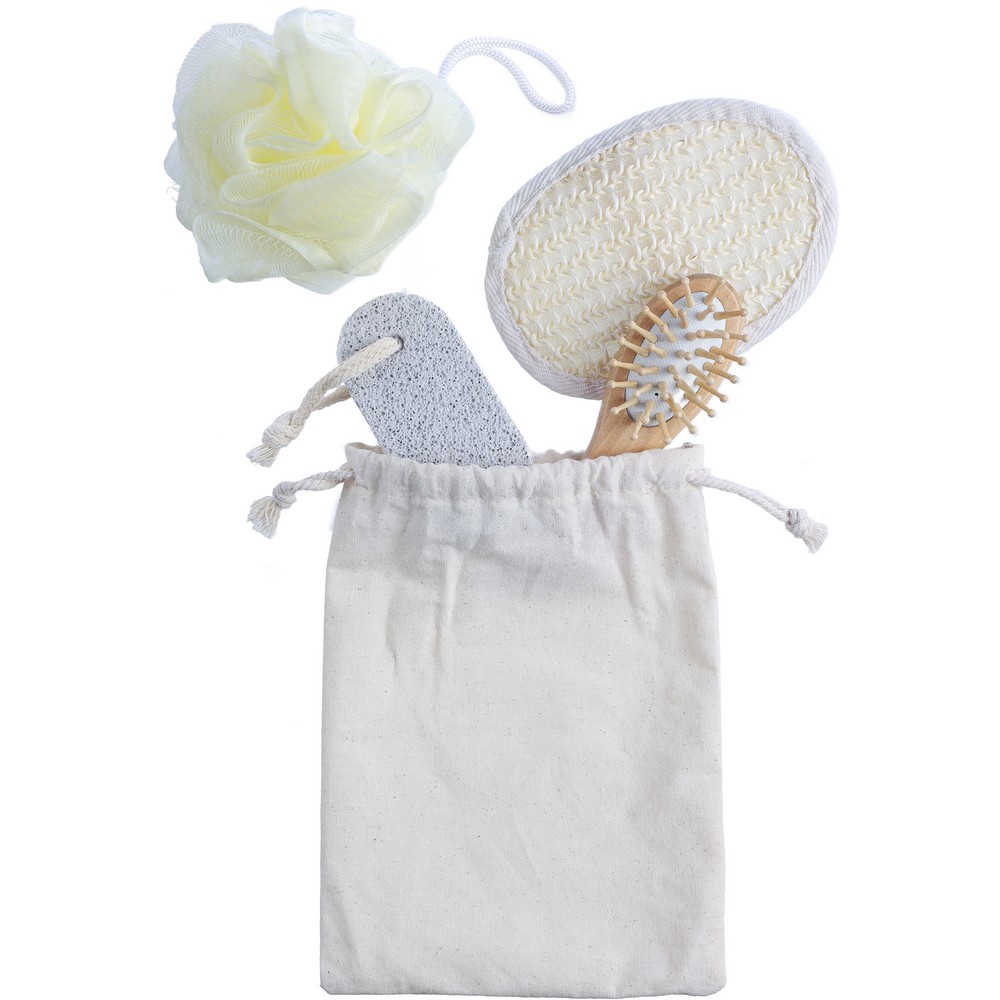Entdecken Sie unser Premium-Badeset, der ideale Imageträger für Ihre Marke! Dieses exquisite Set umfasst eine hochwertige Bamboobürste, eine sanfte Schwamm, einen Peelingschwamm und einen Bimsstein, alles harmonisch verpackt in einer stilvollen Baumwolltasche. Mit den Maßen von 15 x 6,5 x 18 cm und einem Gewicht von nur 104 g, kombiniert es praktische Funktionalität mit ansprechendem Design.