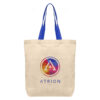 Die Color-Tragetasche aus Baumwolle (140 g/m²) bietet eine umweltfreundliche und preiswerte Möglichkeit, Ihre Marke in Szene zu setzen. Mit ihrem natürlichen Unterboden, farbigen Tragegriffen und einem großen Fassungsvermögen kombiniert sie Funktionalität mit Stil. Die Tasche ist in den Farben Schwarz, Rot, Grün oder Blau erhältlich und wird mit einem 1-Farb-Siebdruck oder Digitaldruck zentral auf der Vorderseite individuell bedruckt.