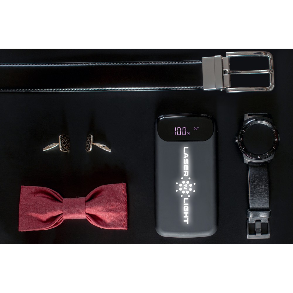 Überzeugen Sie Ihre Geschäftspartner, indem Sie ihnen ein Produkt schenken, das den Alltag erleichtert und gleichzeitig Ihre Markenidentität stärkt. Mit 8000 mAh, kabelloser Ladefunktion und zwei USB-Ausgängen können bis zu zwei Geräte gleichzeitig geladen werden. Innovatives Design mit Digitaldisplay und einer Lasergravur, die Ihren Unternehmensnamen ins Rampenlicht rückt.